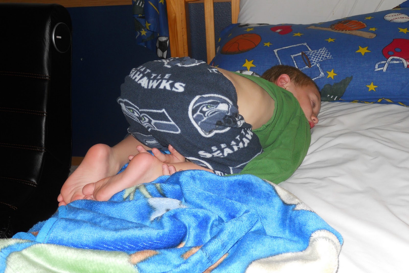 Oh how he cracks me up! Just HOW does one get into this position, stay in it long enough to fall asleep, and then once asleep.....keep sleeping?? Love it.